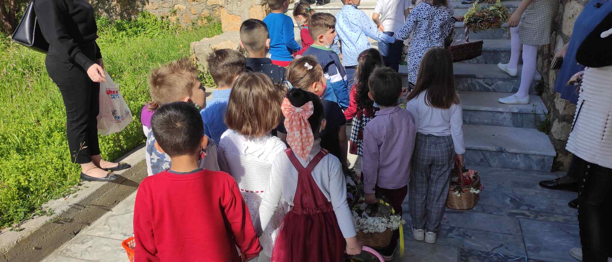 Με καλαθάκια γεμάτα λουλούδια, αυγά και γλυκίσματα, οι μικροί μαθητές του 1ου Νηπιαγωγείου Σκάλας, επισκέφτηκαν την Παρασκευή 15 Απριλίου το Δημαρχείο Ευρώτα, για να τα … ψάλλουν!