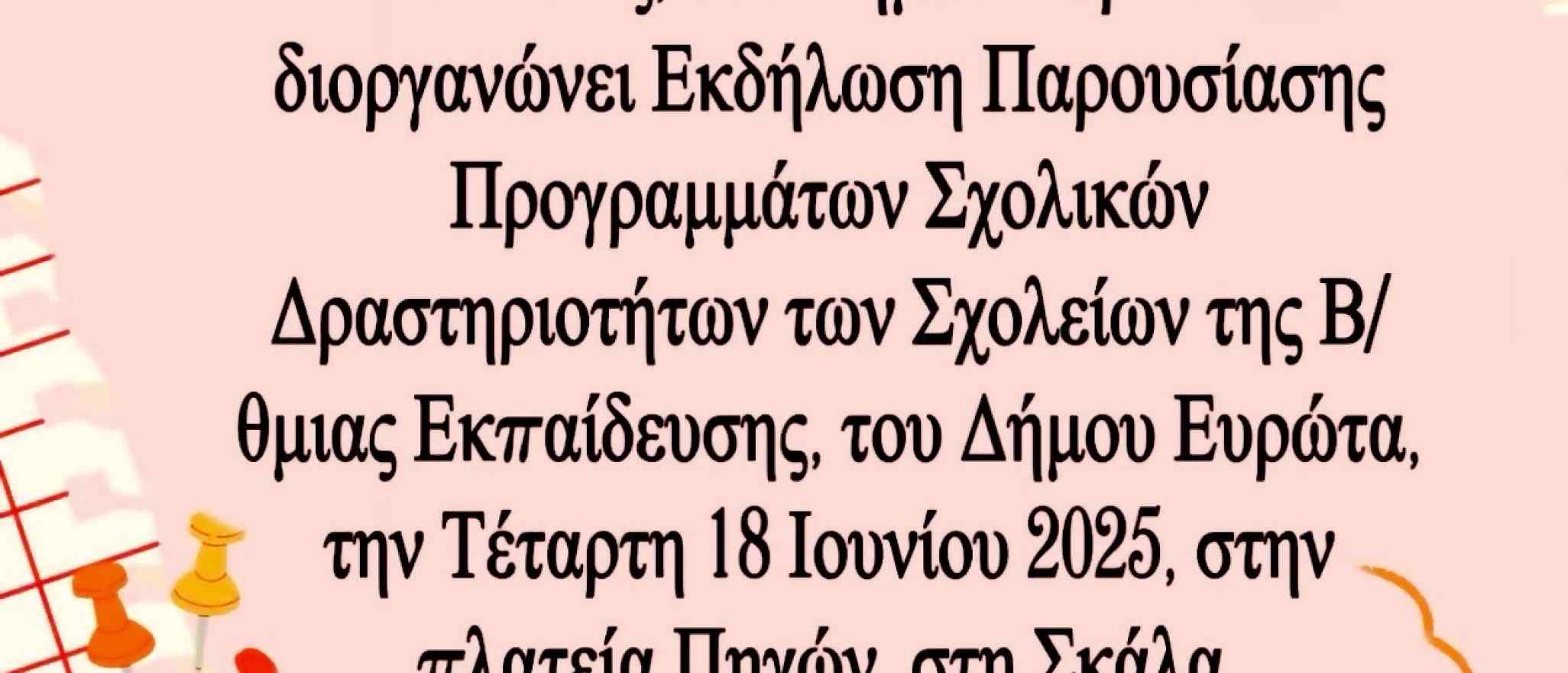 Ο Δήμος Ευρώτα σας προσκαλεί σε μια ξεχωριστή βραδιά αφιερωμένη στη δημιουργικότητα και το έργο των σχολείων μας!