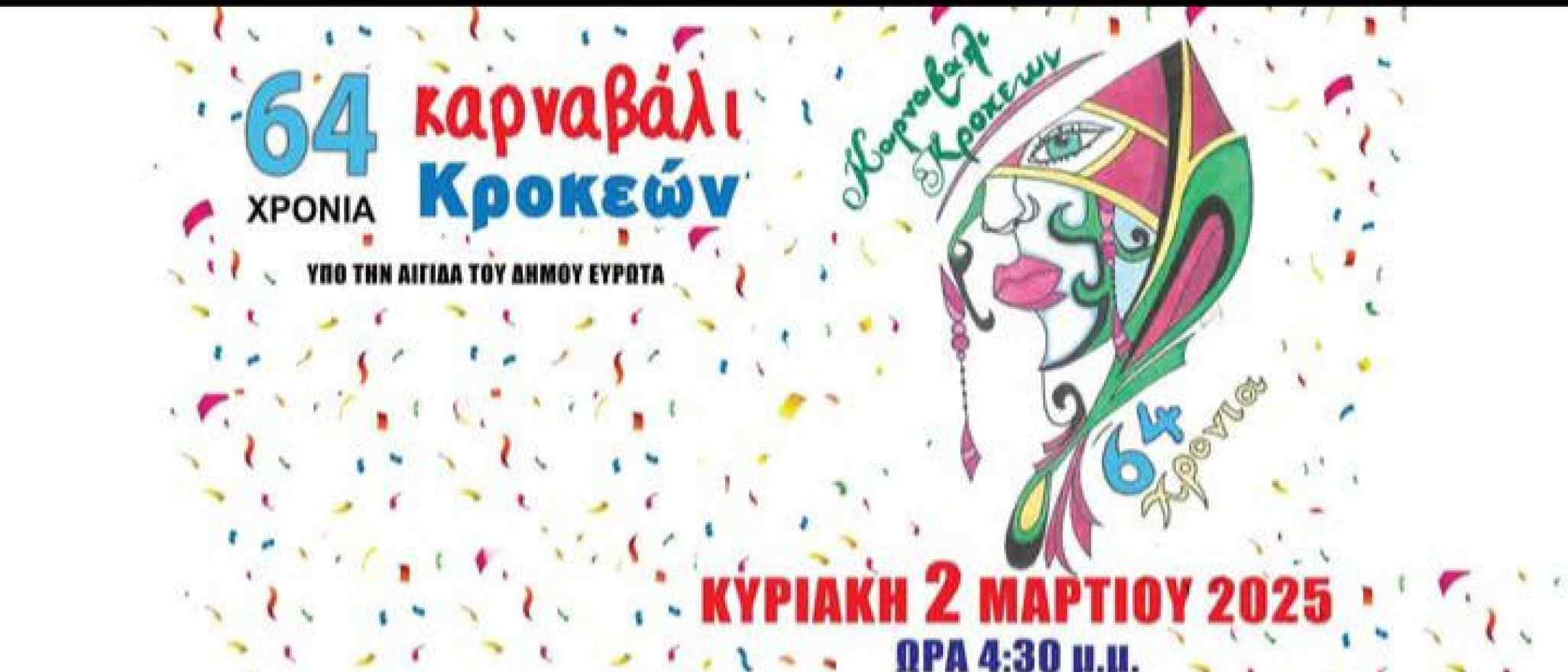 64ο Καρναβάλι Κροκεών την Κυριακή 2 Μαρτίου 2025