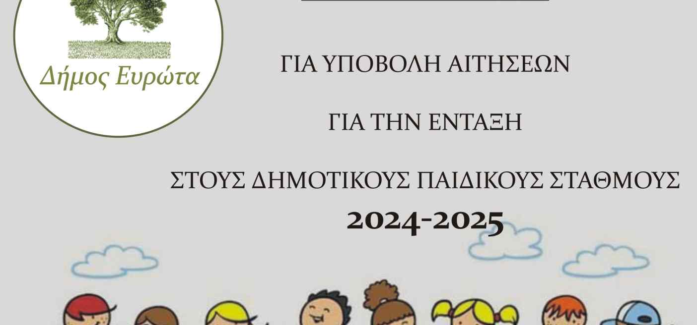 ΑΝΑΚΟΙΝΩΣΗ ΓΙΑ ΥΠΟΒΟΛΗ ΑΙΤΗΣΕΩΝ ΓΙΑ ΤΗΝ ΕΝΤΑΞΗ ΣΤΟΥΣ ΔΗΜΟΤΙΚΟΥΣ ΠΑΙΔΙΚΟΥΣ ΣΤΑΘΜΟΥΣ
