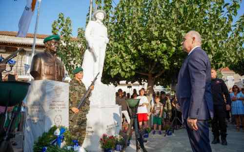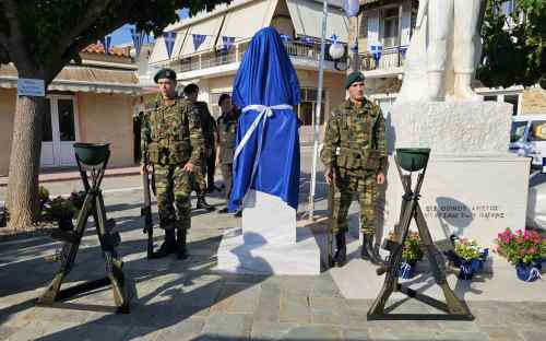 Η αγέρωχη μορφή του, σμιλεύτηκε πάνω στον χαλκό για να αποτελέσει για όλους μας σύμβολο μνήμης, για να μας υπενθυμίζει την πίστη στο όραμα, την ανδρεία και την αφοσίωση στις μεγάλες αξίες που συγκρότησαν το Έθνος μας μέσα στους αιώνες.