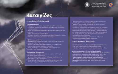 - Να αποφεύγουν να διασχίζουν χειμάρρους και ρέματα, πεζή ή με όχημα, κατά τη διάρκεια καταιγίδων και βροχοπτώσεων, αλλά και για αρκετές ώρες μετά το τέλος της εκδήλωσής τους