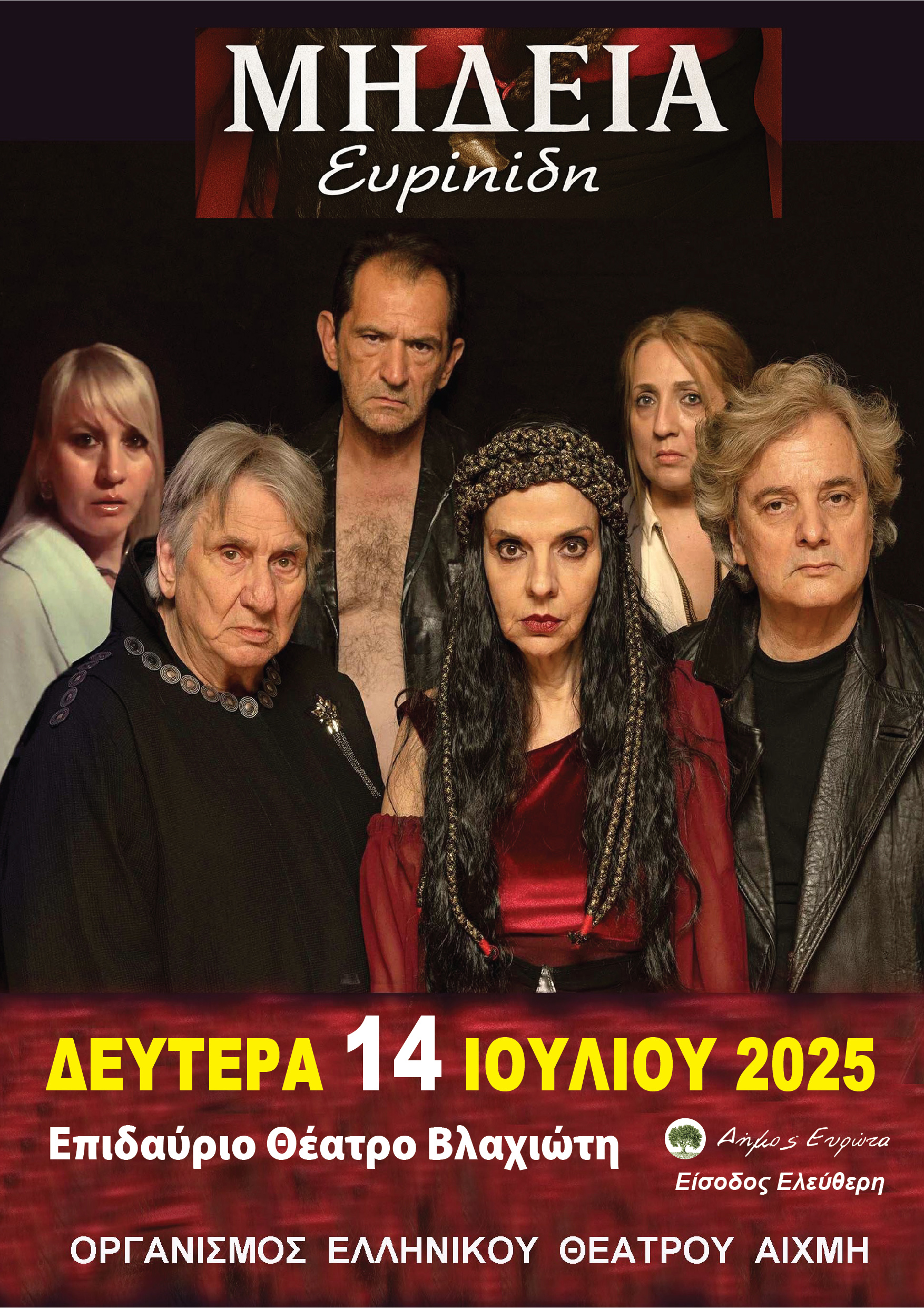 Ο Δήμος Ευρώτα και ο Οργανισμός Ελληνικού Θεάτρου ΑΙΧΜΗ σας προσκαλούν σε μία συγκλονιστική θεατρική βραδιά με την «ΜΗΔΕΙΑ» του Ευριπίδη. Ένα από τα πιο εμβληματικά έργα της αρχαίας τραγωδίας ζωντανεύει στη σκηνή του Επιδάυριου Θεάτρου Βλαχιώτη, με ελεύθερη είσοδο για το κοινό.