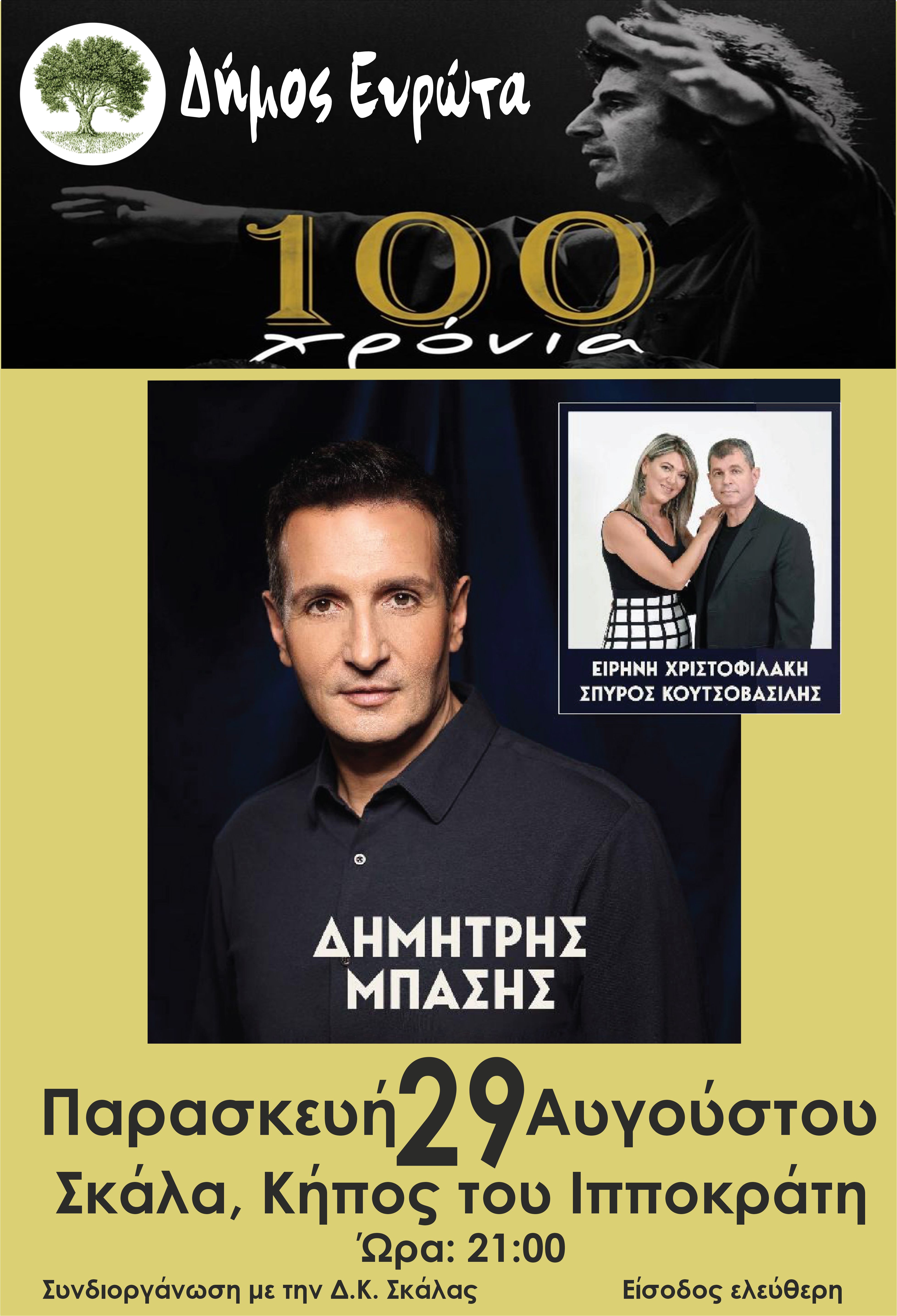 Σήμερα Παρασκευή 29 Αυγούστου 2025, στις 21:00, στον Κήπο του Ιπποκράτη στη Σκάλα, οι μελωδίες του μεγάλου Έλληνα δημιουργού θα ζωντανέψουν ξανά και θα μας ταξιδέψουν.