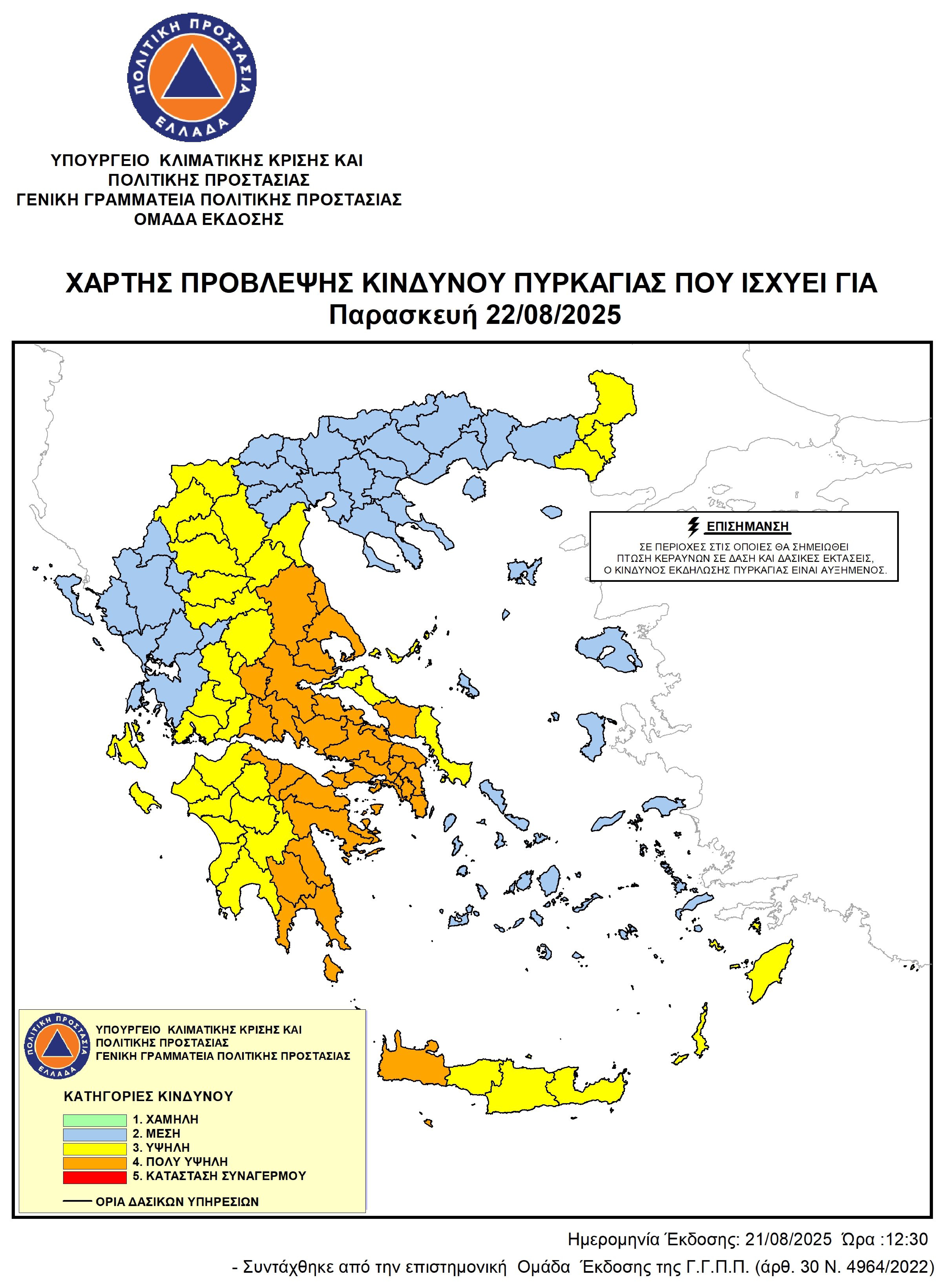 ΠΟΛΥ ΥΨΗΛΟΣ ΚΙΝΔΥΝΟΣ ΠΥΡΚΑΓΙΑΣ (ΚΑΤΗΓΟΡΙΑ ΚΙΝΔΥΝΟΥ 4) ΣΕ ΟΛΗ ΤΗ ΛΑΚΩΝΙΑ ΑΥΡΙΟ ΠΑΡΑΣΚΕΥΗ (22-08-2025) – ΟΔΗΓΙΕΣ ΠΡΟΣΤΑΣΙΑΣ – ΑΠΑΓΟΡΕΥΣΗ ΚΥΚΛΟΦΟΡΙΑΣ ΣΕ ΔΑΣΙΚΕΣ ΕΚΤΑΣΕΙΣ