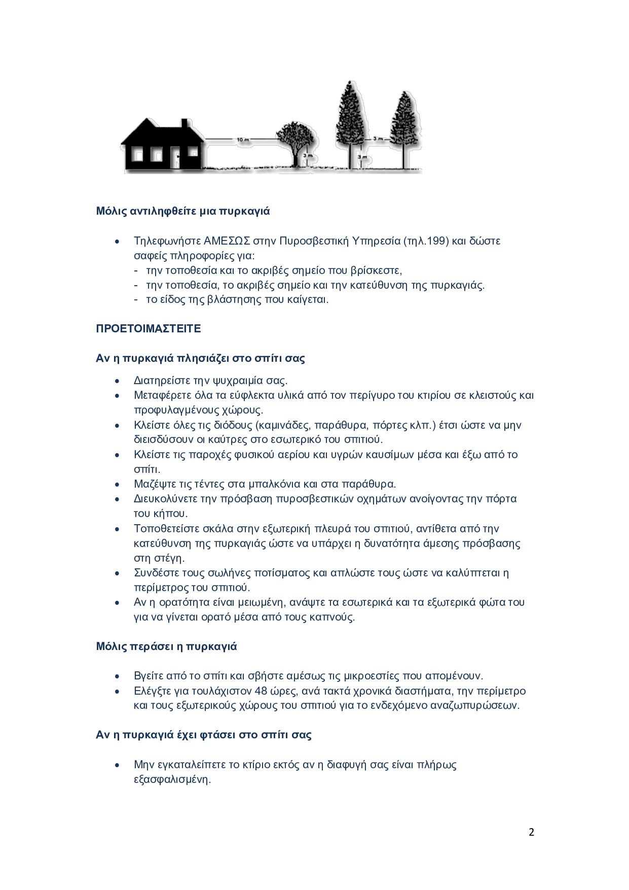 Σε περίπτωση που οι πολίτες αντιληφθούν πυρκαγιά, παρακαλούνται να ειδοποιήσουν αμέσως την Πυροσβεστική Υπηρεσία στον αριθμό κλήσης 199 ή στο 112 Ευρωπαϊκός Αριθμός Έκτακτης Ανάγκης.