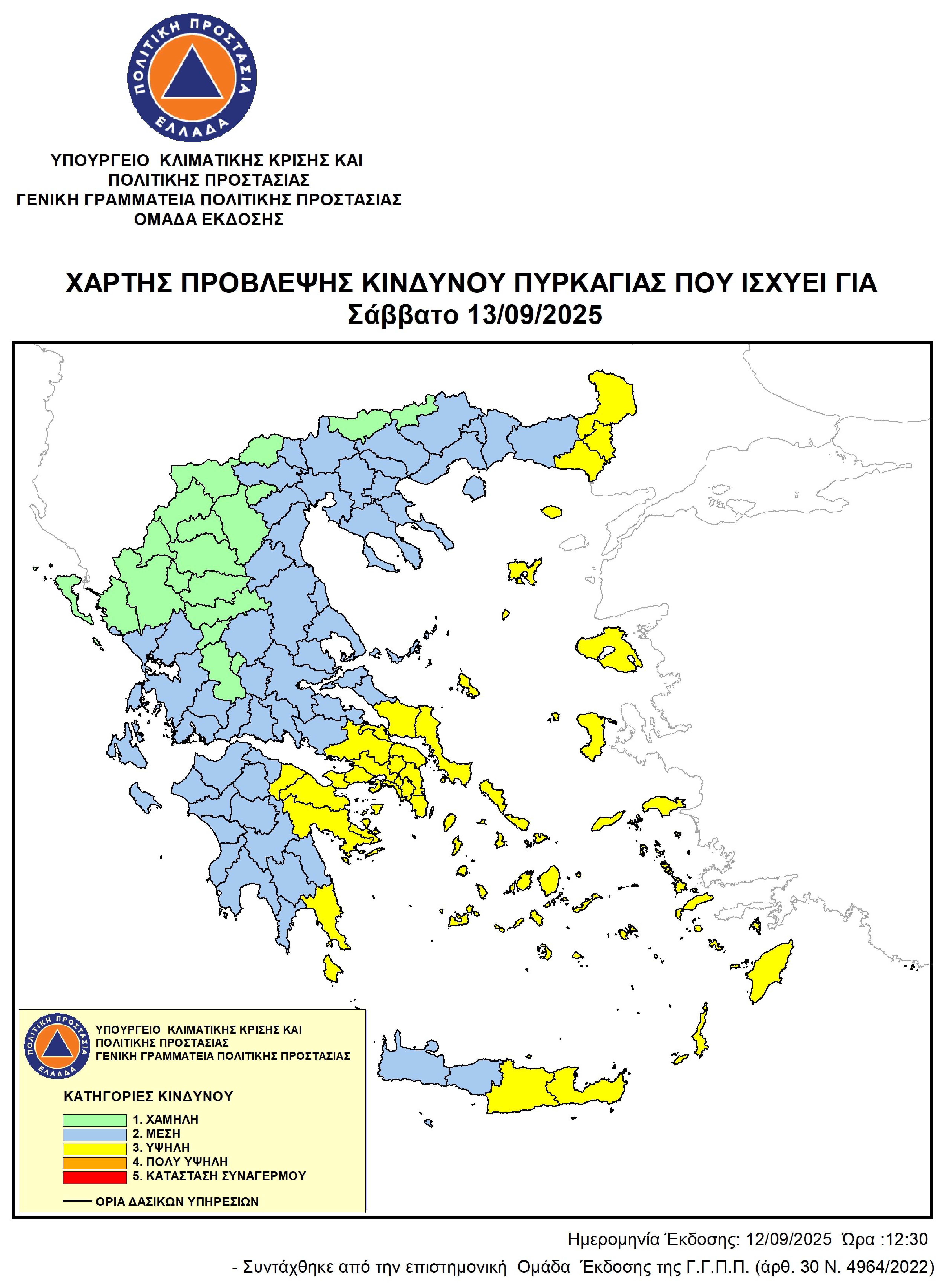 ΥΨΗΛΟΣ ΚΙΝΔΥΝΟΣ ΠΥΡΚΑΓΙΑΣ (ΚΑΤΗΓΟΡΙΑ ΚΙΝΔΥΝΟΥ 3) ΣΕ ΟΛΗ ΤΗ ΛΑΚΩΝΙΑ ΤΟ ΣΑΒΒΑΤΟ 13-09-2025 – ΟΔΗΓΙΕΣ ΠΡΟΣΤΑΣΙΑΣ – ΑΠΑΓΟΡΕΥΣΗ ΚΥΚΛΟΦΟΡΙΑΣ ΣΕ ΔΑΣΙΚΕΣ ΕΚΤΑΣΕΙΣ