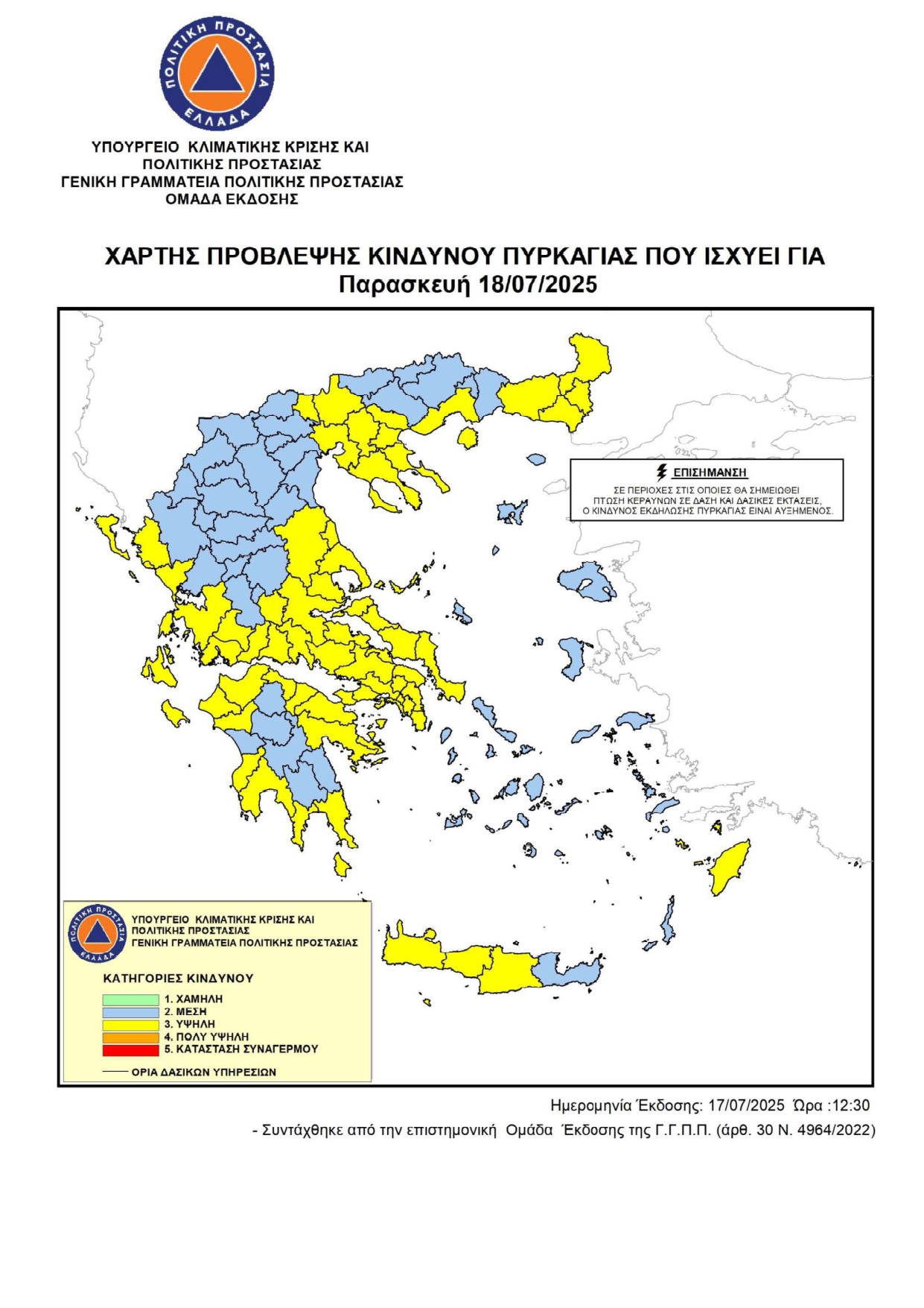 ΥΨΗΛΟΣ ΚΙΝΔΥΝΟΣ ΠΥΡΚΑΓΙΑΣ (ΚΑΤΗΓΟΡΙΑ ΚΙΝΔΥΝΟΥ 3) ΣΤΟ ΔΗΜΟ ΕΥΡΩΤΑ ΚΑΙ ΤΗΝ ΠΑΡΑΣΚΕΥΗ 18-07-2025 – ΟΔΗΓΙΕΣ ΠΡΟΣΤΑΣΙΑΣ – ΑΠΑΓΟΡΕΥΣΗ ΚΥΚΛΟΦΟΡΙΑΣ ΣΕ ΔΑΣΙΚΕΣ ΕΚΤΑΣΕΙΣ