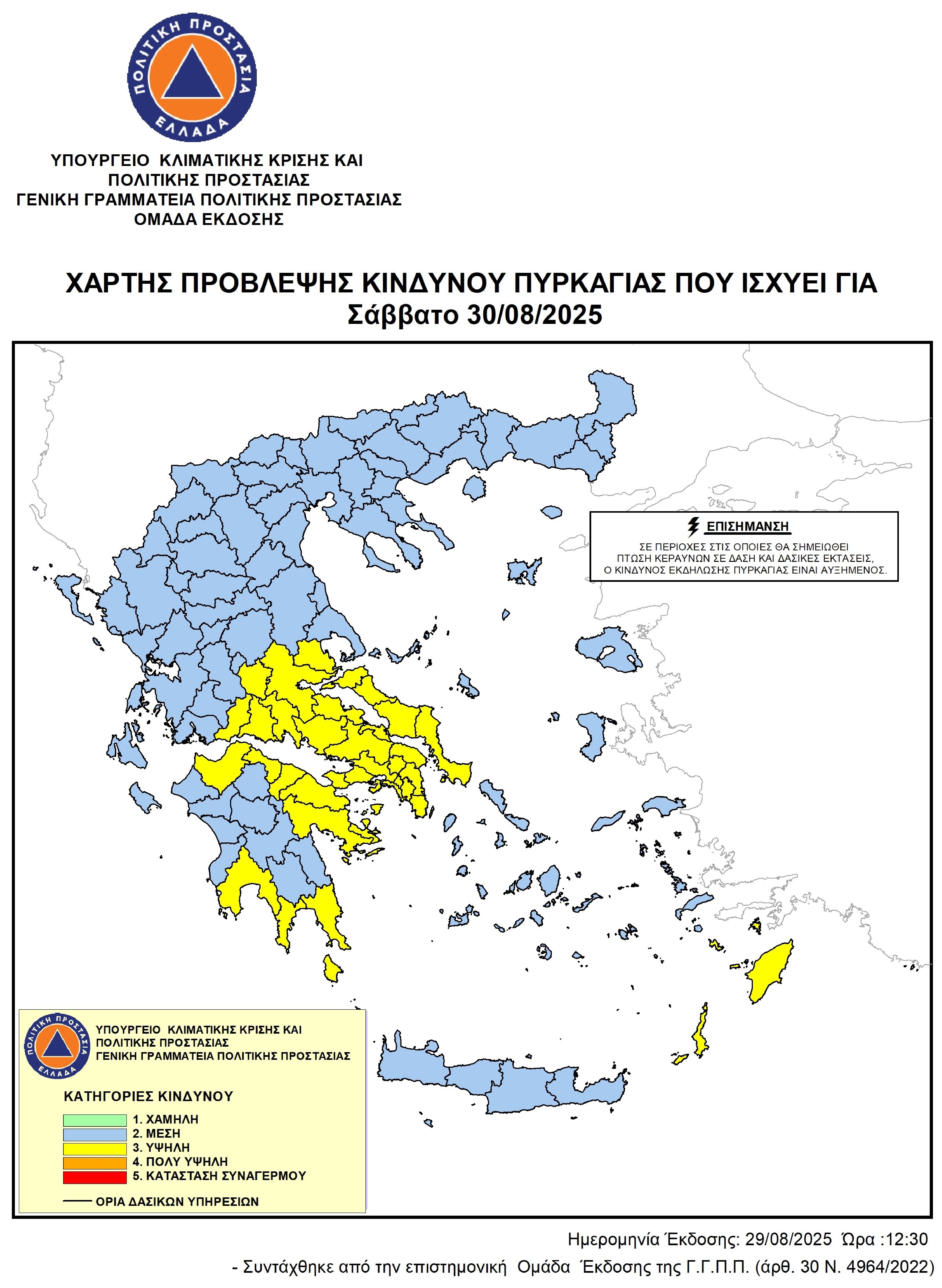 ΥΨΗΛΟΣ ΚΙΝΔΥΝΟΣ ΠΥΡΚΑΓΙΑΣ (ΚΑΤΗΓΟΡΙΑ ΚΙΝΔΥΝΟΥ 3) ΣΤΟ ΔΗΜΟ ΕΥΡΩΤΑ ΚΑΙ ΤΟ ΣΑΒΒΑΤΟ 30-08-2025 – ΟΔΗΓΙΕΣ ΠΡΟΣΤΑΣΙΑΣ – ΑΠΑΓΟΡΕΥΣΗ ΚΥΚΛΟΦΟΡΙΑΣ ΣΕ ΔΑΣΙΚΕΣ ΕΚΤΑΣΕΙΣ