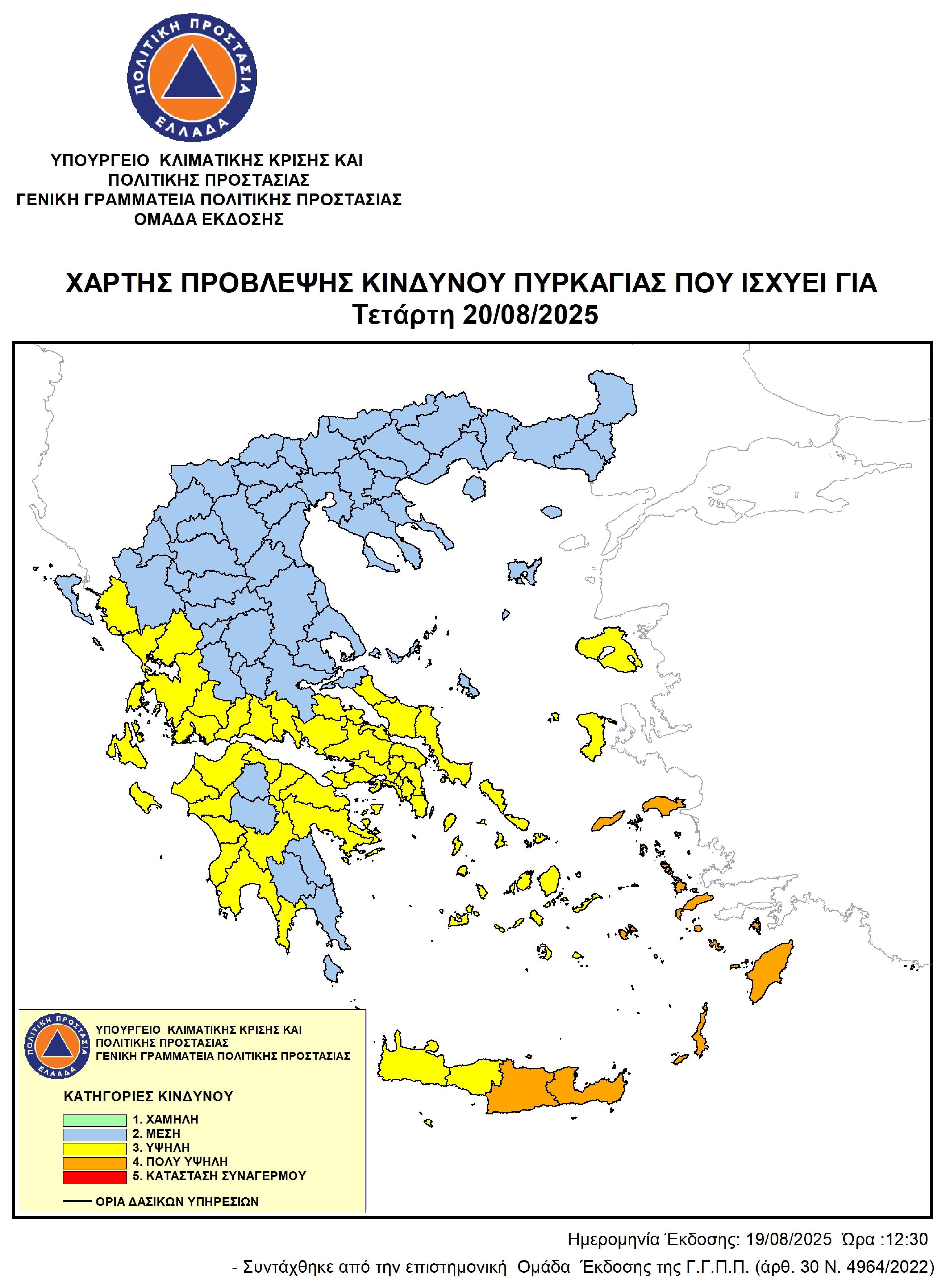 ΥΨΗΛΟΣ ΚΙΝΔΥΝΟΣ ΠΥΡΚΑΓΙΑΣ (ΚΑΤΗΓΟΡΙΑ ΚΙΝΔΥΝΟΥ 3) ΤΗΝ ΤΕΤΑΡΤΗ 20-08-2025 – ΟΔΗΓΙΕΣ ΠΡΟΣΤΑΣΙΑΣ – ΑΠΑΓΟΡΕΥΣΗ ΚΥΚΛΟΦΟΡΙΑΣ ΣΕ ΔΑΣΙΚΕΣ ΕΚΤΑΣΕΙΣ