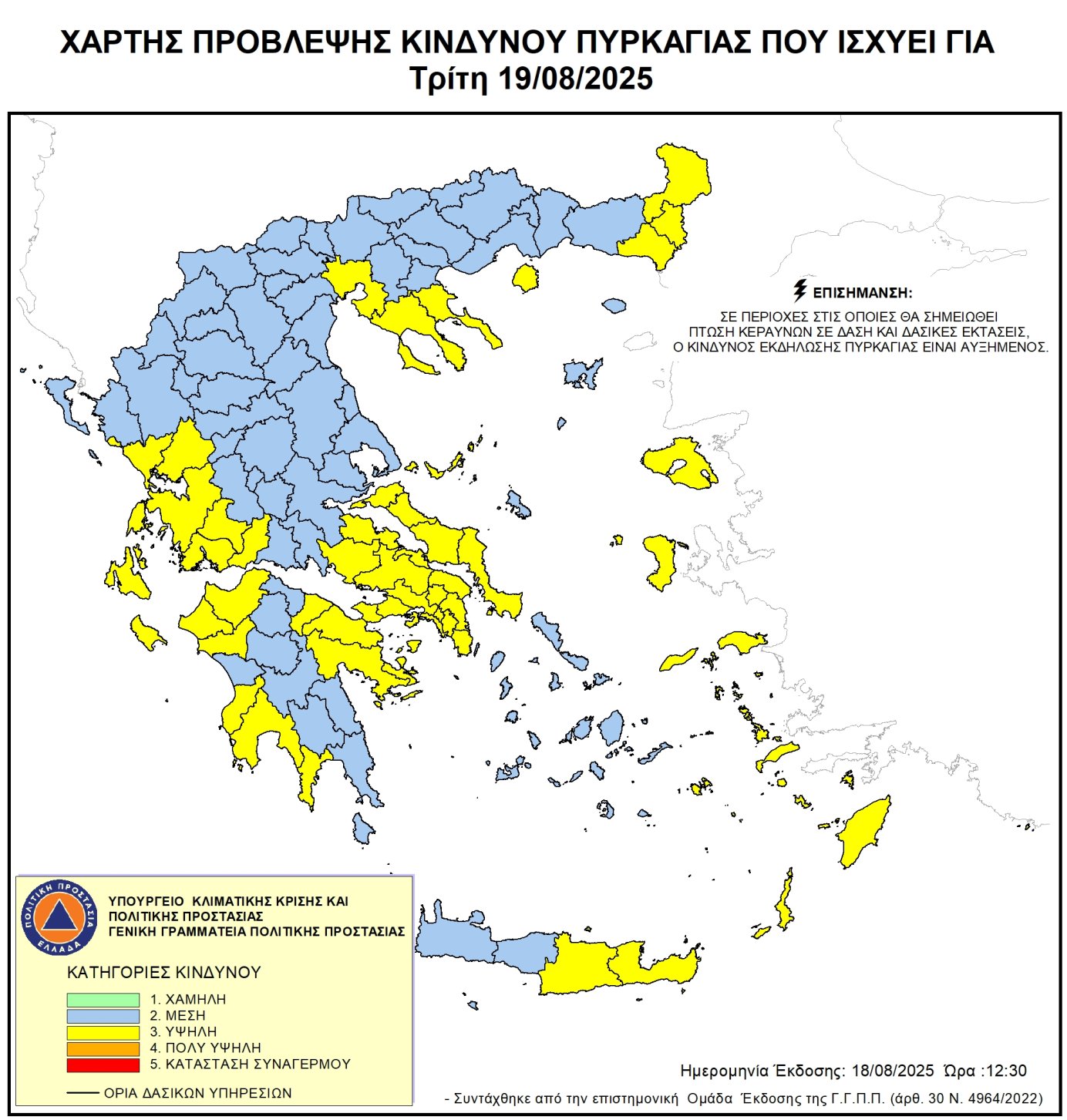ΥΨΗΛΟΣ ΚΙΝΔΥΝΟΣ ΠΥΡΚΑΓΙΑΣ (ΚΑΤΗΓΟΡΙΑ ΚΙΝΔΥΝΟΥ 3) ΤΗΝ ΤΡΙΤΗ 19-08-2025 – ΟΔΗΓΙΕΣ ΠΡΟΣΤΑΣΙΑΣ – ΑΠΑΓΟΡΕΥΣΗ ΚΥΚΛΟΦΟΡΙΑΣ ΣΕ ΔΑΣΙΚΕΣ ΕΚΤΑΣΕΙΣ