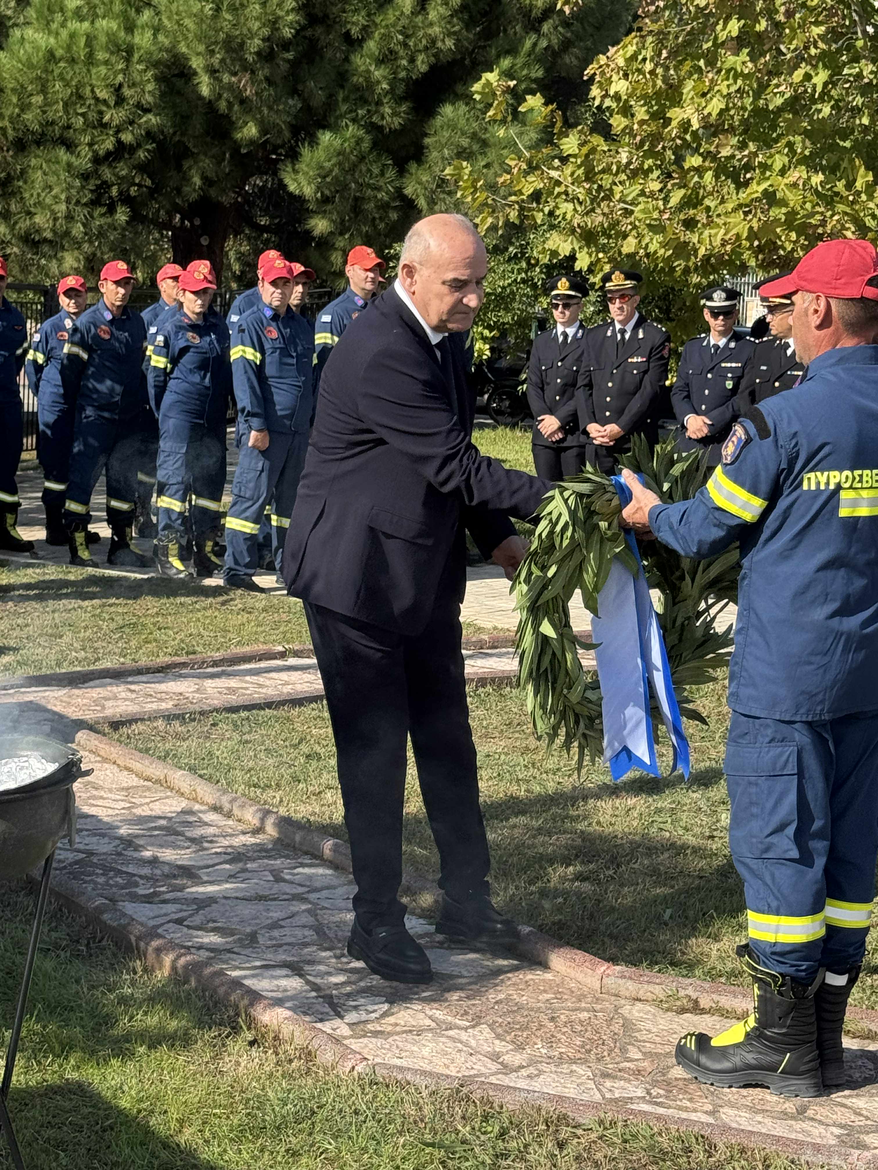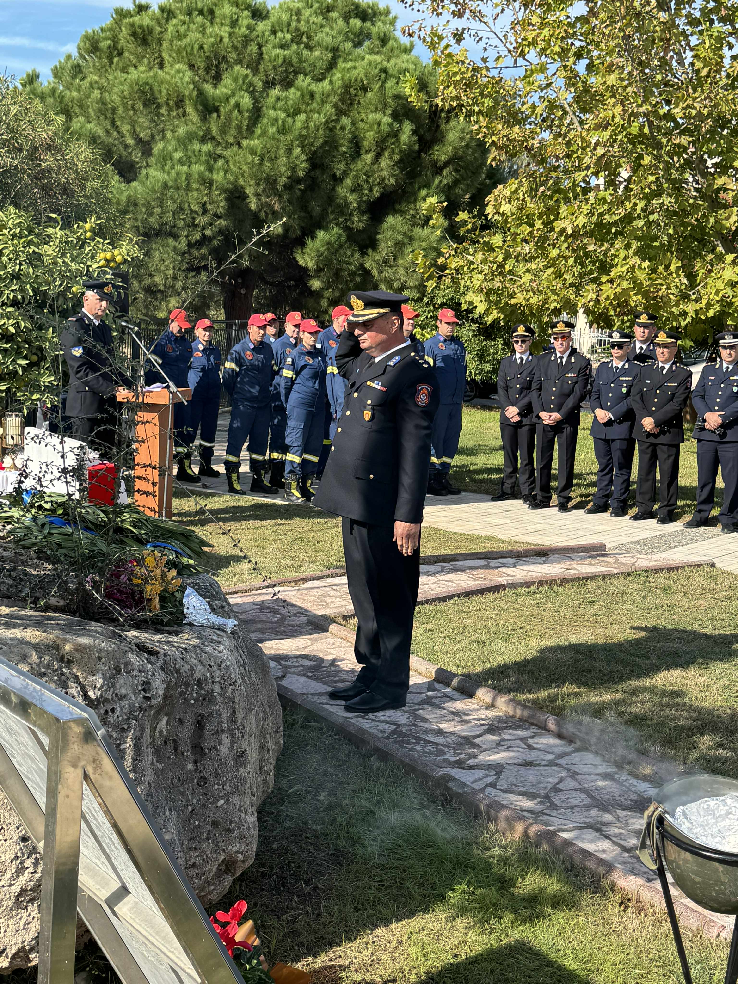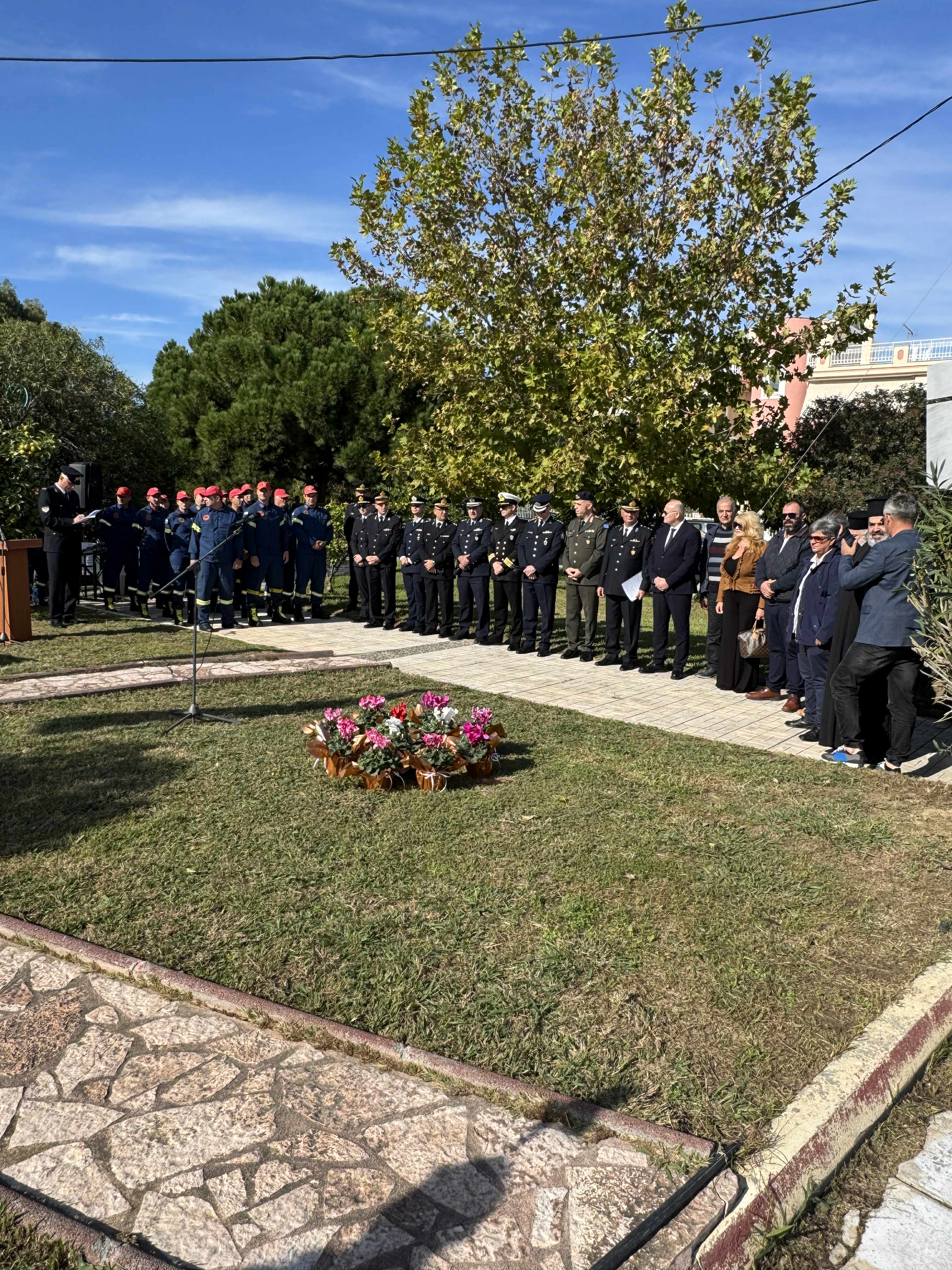 Η τελετή περιελάμβανε επιμνημόσυνη δέηση, κατάθεση στεφάνων και εκφώνηση λόγων από εκπροσώπους των αρχών και του Πυροσβεστικού Σώματος.