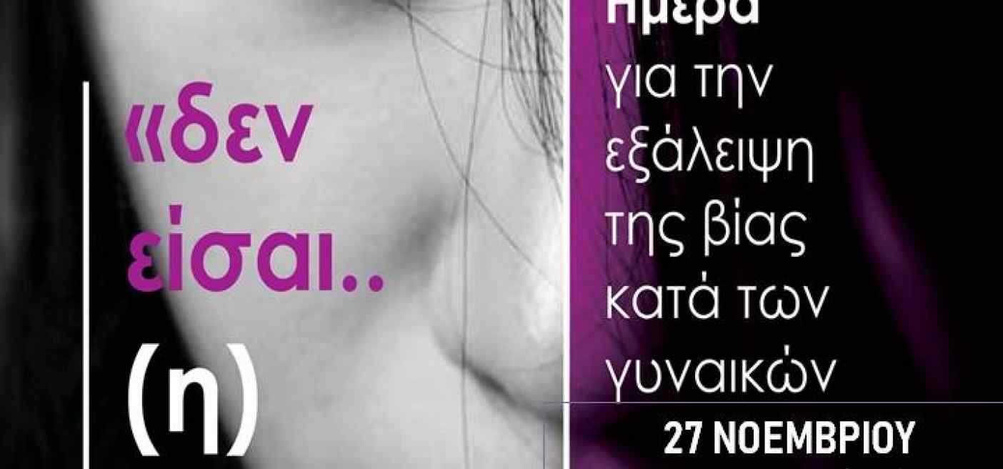 Με αφορμή την 25η Νοεμβρίου, Παγκόσμια Ημέρα για την Εξάλειψη της Βίας κατά των Γυναικών, το Αυτοτελές Τμήμα Κοινωνικής Προστασίας, Δημόσιας Υγείας και Παιδείας του Δήμου Ευρώτα, καθώς και η Επιτροπή Ισότητας του Δήμου Ευρώτα, διοργανώνει εκδήλωση με θέμα «Δεν είσαι (η) μόνη», την Πέμπτη 27 Νοεμβρίου και ώρα 18:30, στο Πνευματικό Κέντρο στα Νιάτα.